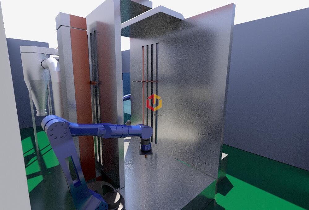 工藝步驟:利用靜電吸附原理,在工件的表面均勻的噴上一層粉末涂料; 落下的粉末通過回收系統回收。